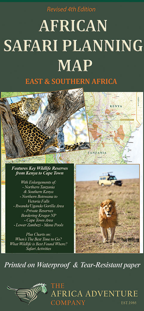 As a consummate explorer and researcher, Mark Nolting’s expertise is well recorded. In addition to his in-depth Africa’s Top Wildlife Countries series, Mark previously authored the compact African Safari Field Guide. The Africa Adventure Company, managed by Mark and his wife Alison Nolting, has celebrated its 32nd anniversary as a top Africa specialist this year. Well-known for delivering expert safari guidance, The Africa Adventure Company presents this tangible option for safari planning, the Safari Planning Map, to share with all Mark Nolting’s vast knowledge and enthusiasm for African wildlife.